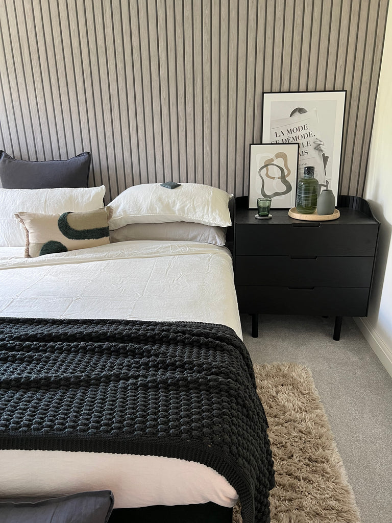 The 3 drawer chest is ideal for those who want extra storage for bedside tables, in a smaller space or even in office for filing away. It features a ribbed collar detail to create a Scandi-inspired aesthetic. The drawers feature metal runners for a smooth opening and are perfect for storing your makeup and other essentials.