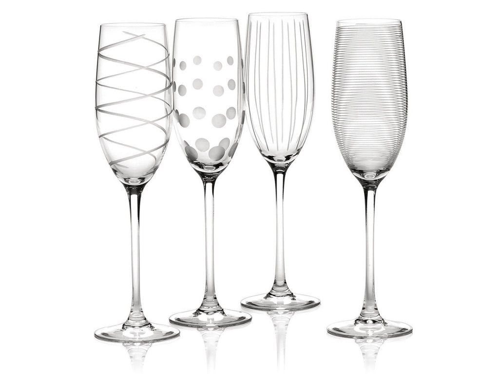 Party in style with this set of four champagne flute glasses. Be unique with precision-etched designs in a sophisticated, coordinating collection. A wonderful gift for anyone who loves to entertain, or simply appreciates elegant glassware.