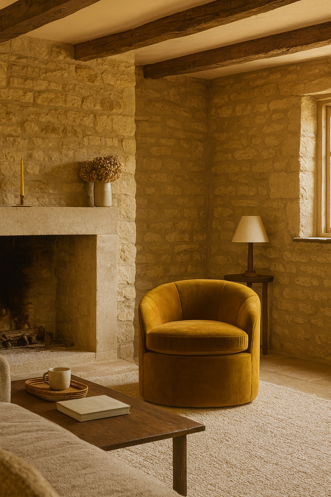 Designed by us at Salcombe Trading. Named after the iconic Crescent in the beautiful city of Bath. This curvaceous range offers the ultimate in luxury and homely roundness. Upholstered in sumptuous Ochre Velvet fabric, this will slot into a heavenly neutral scheme, or brighten up a darker room.
