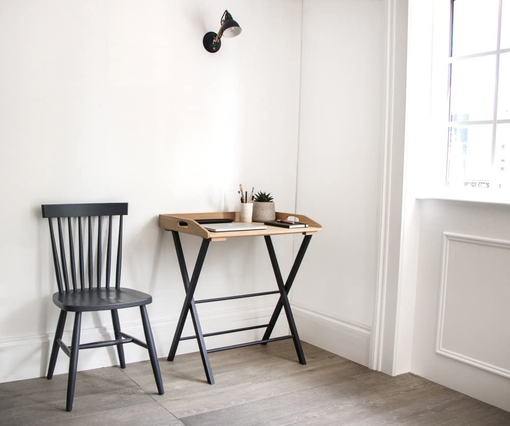Stylish and portable the Walcot Foldaway Desk offers a practical working space without taking up vast amounts of room. Crafted with an Oak top and Beech legs painted Carbon, this lovely mix of materials and colours. The Oak top comes with a light protective layer of hard wax oil to avoid staining.