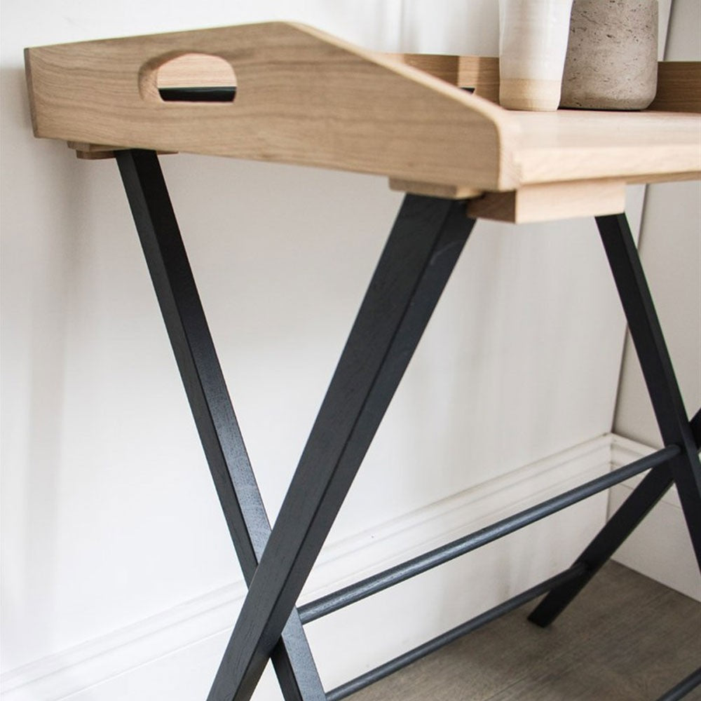 Keeping the design simple, the cut-out handles allow you to lift off the tray and the legs are foldable, allowing you to stow away easily should you require. Ideal as an occasional working station or side table, the tray offers perfect proportions to hold a laptop and papers or a lamp and home accessories.