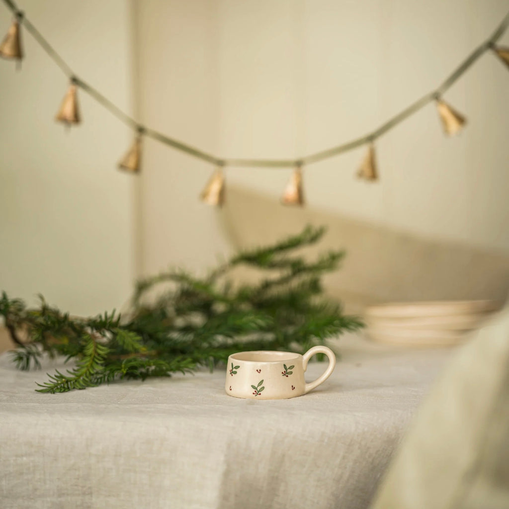 Crafted with a matte cream glaze and hand painted holly sprig, each ceramic tea light holder has a softly unique finish. Ideal for gifting collections, festive homeware edits and winter tabletop styling.