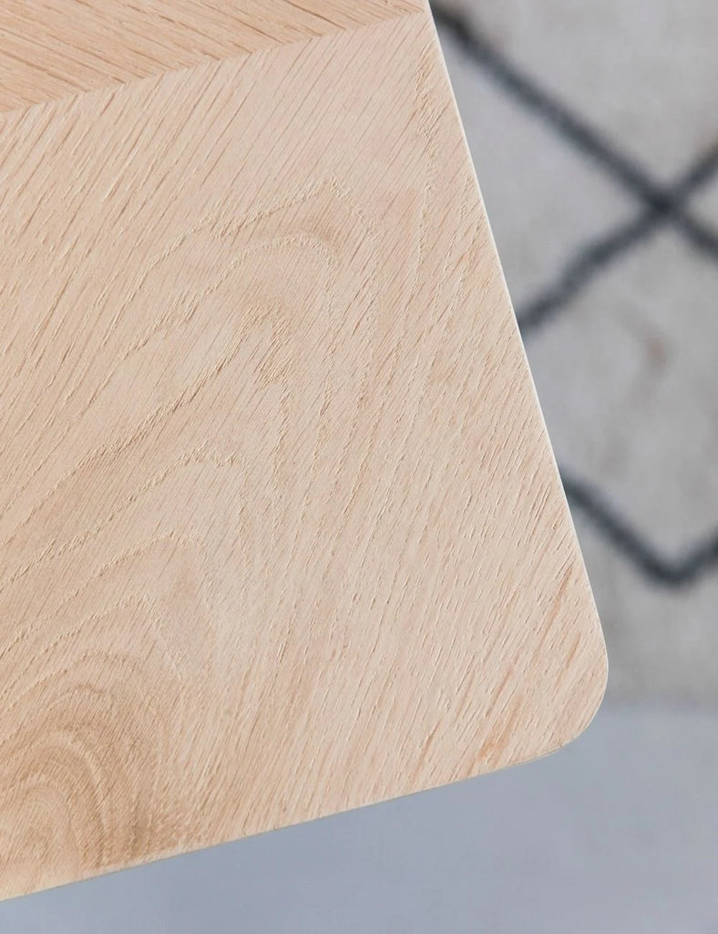 The stunning Herringbone Dining Table features a beautiful inlay chevron design, and is made using European oak and rustic oak structured veneers which show the natural beauty of the oak grain and knots. Finished in a specialist mat lacquer, which keeps the timber looking natural and dry, with brushed out grain, the table is tactile to touch and looks amazing.