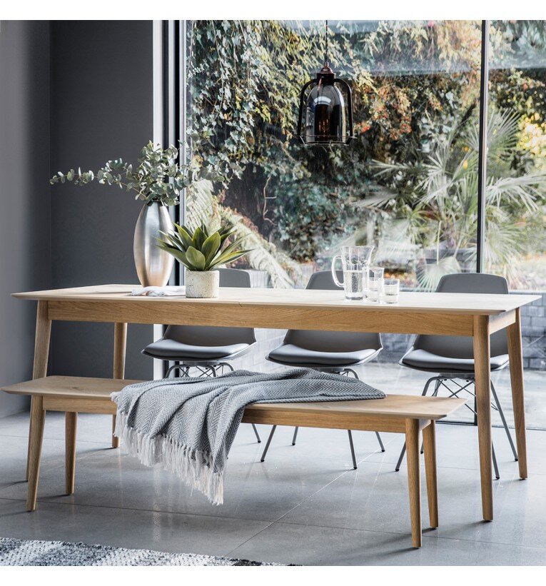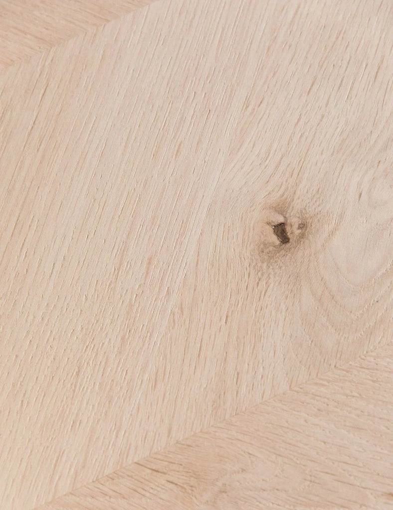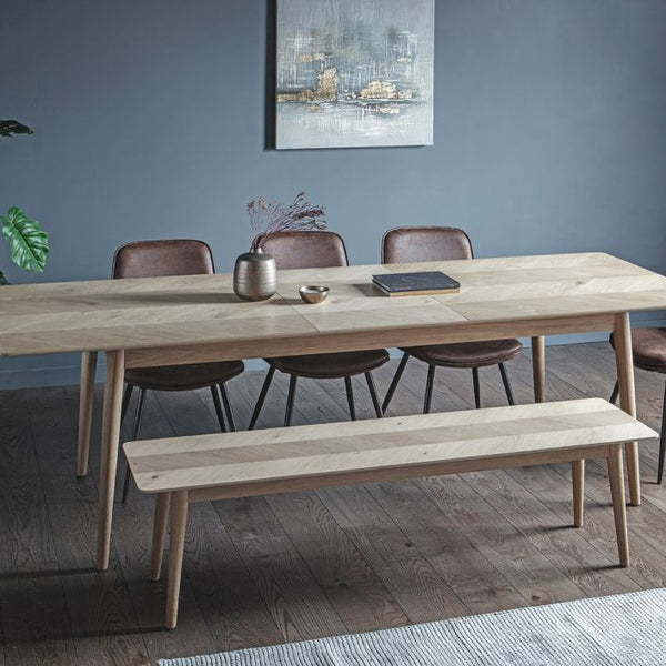 The stunning Herringbone Extending Dining Table features a beautiful inlay chevron design, and is made using European oak and rustic oak structured veneers which show the natural beauty of the oak grain and knots. Finished in a specialist mat lacquer, which keeps the timber looking natural and dry, with brushed out grain, the table is tactile to touch and looks amazing.