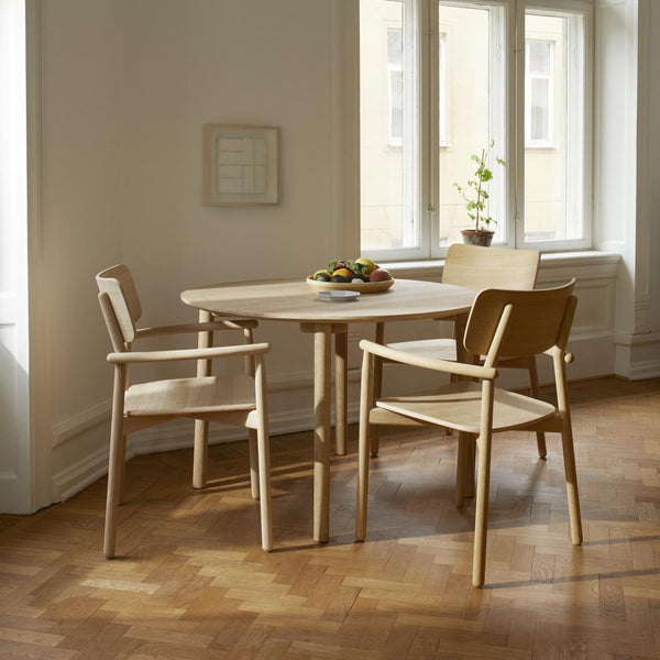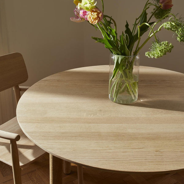 Hven Table is made from solid, FSC-certified oak with a stunning grain pattern and remarkable durability. A soft, minimalist design, characterised by round legs and corners – easy to combine with other items in the living room.