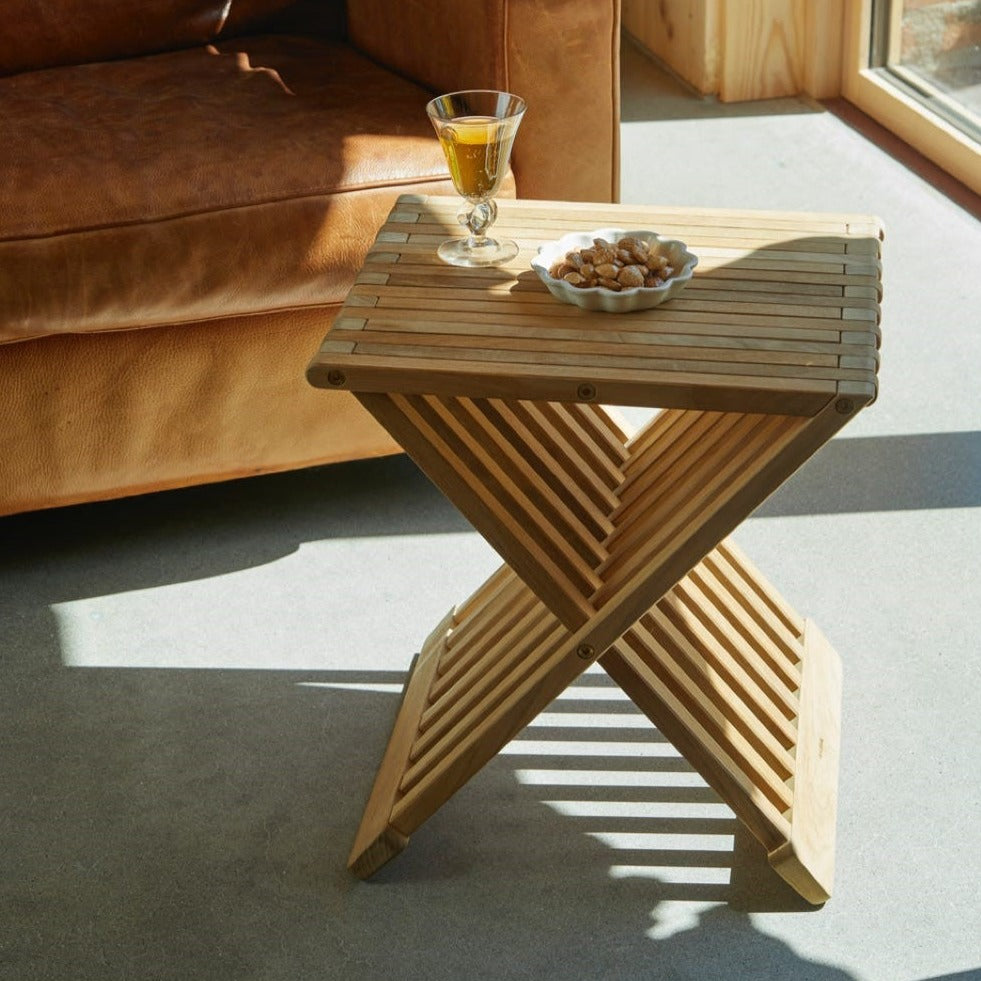 The Fionia Stool from Skagerak is an expression of brilliant design and workmanship. The stool is elegant even when folded. It can be used in every room of the home, as a footstool, side table, bedside table or simply as a stand for flowers.