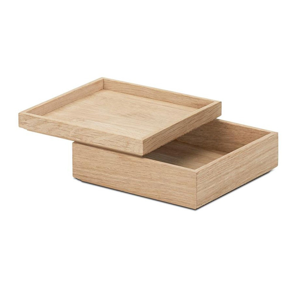 Display and hide away. Nomad Box and Tray can be used together or one on one. The rectangular tray is perfect for serving or for organising bits and sundries, and the square box can be used to store things out of sight. The square lid even doubles as a tray. Nomad Box and Tray were designed by VE2.