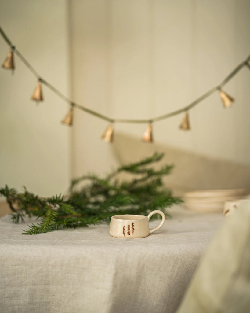 Crafted with a matte cream glaze and hand painted gorgeous Nordic spruce tree, each ceramic tea light holder brings a gentle seasonal touch. Suited to autumn/winter gifting collections, tabletop displays and seasonal homeware edits.