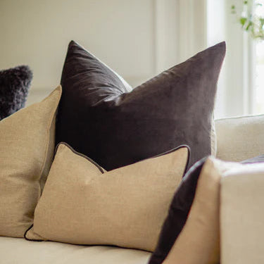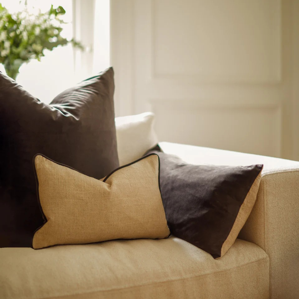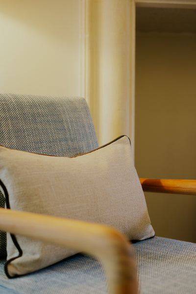 Meet Bertie. Made with luxurious Ramie Cotton (looks and feels like linen), this timeless piece adds elegance to any living space. The contrasting velvet mole edge detail adds a touch of luxury to the classic design.