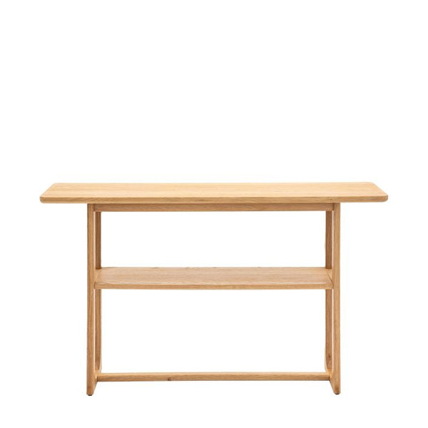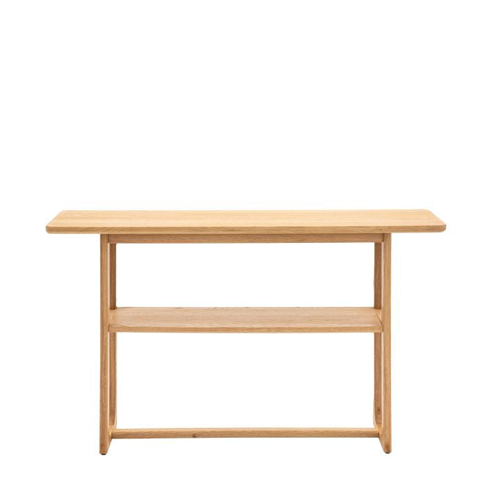 Crafted from the finest oak and structural oak veneers where practical, this beautiful console table would suit a wide range of interiors. The elegant underframe offers structural stability combined with style and the shelf adds extra practicality to the table. The wood has a lovely natural finish.