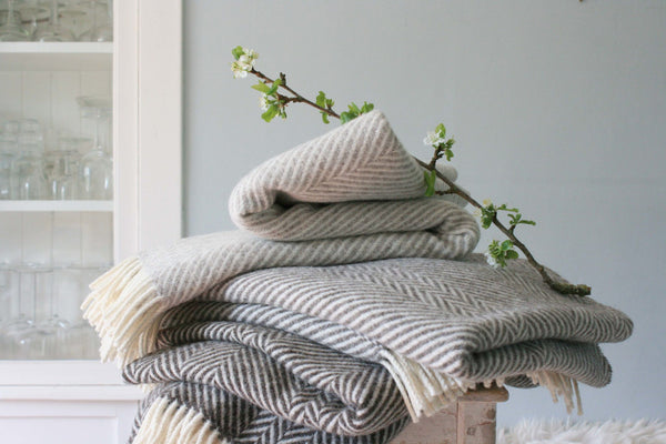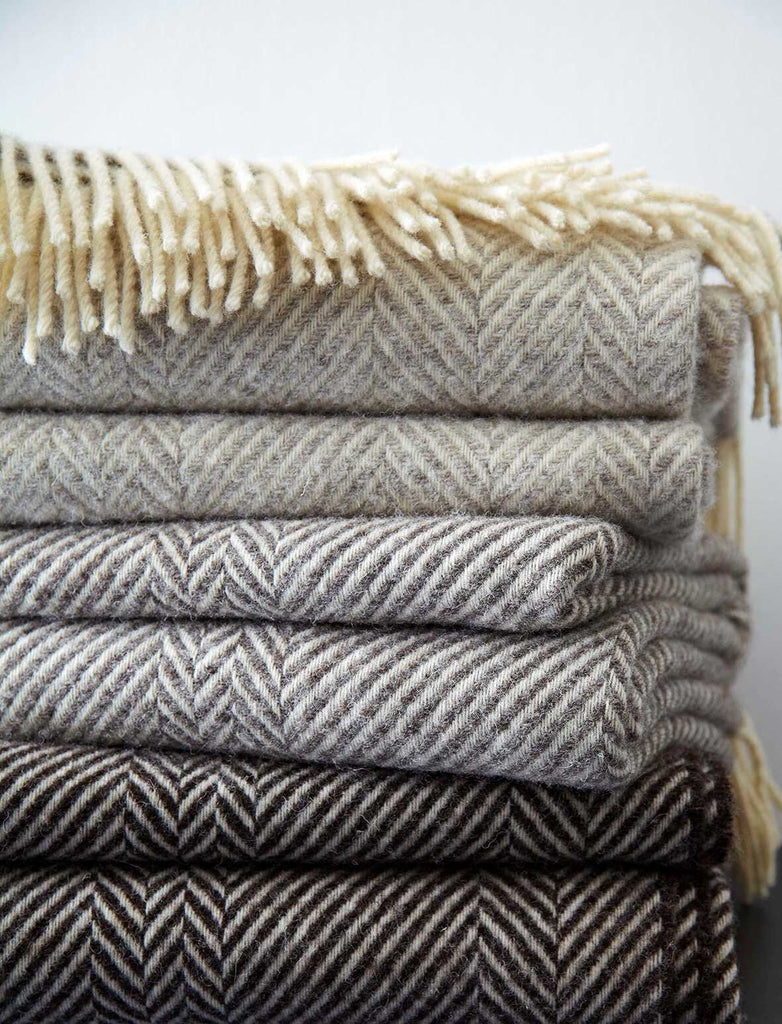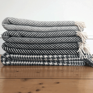 With a classic Chevron pattern and a fringed edge, these make the perfect blankets for all styles of home. We have blended the natural undyed colours of the fleece of the Jacob sheep, an ancient and unique breed, to give a soft colour palette for our Chevron Jacob wool blankets. Creating quality through tradition.