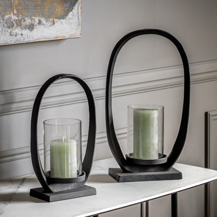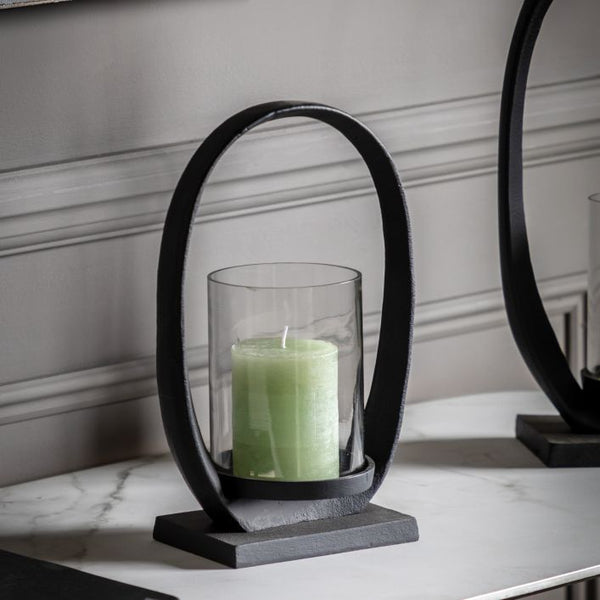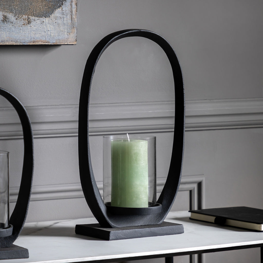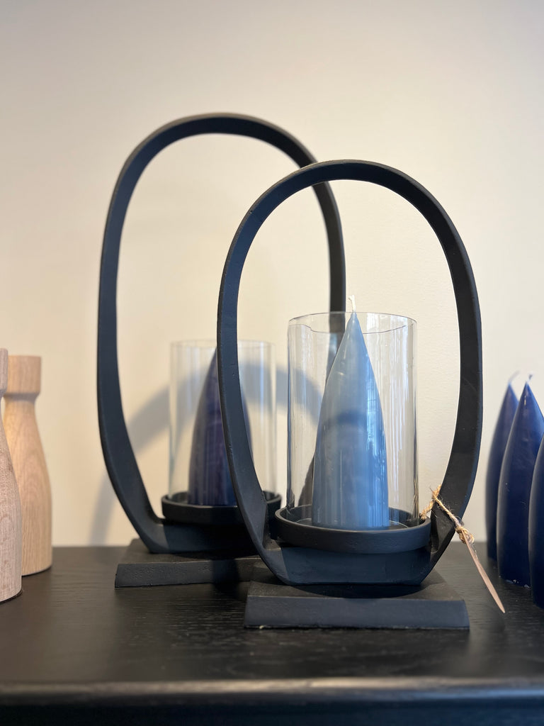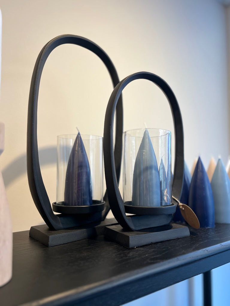 A contemporary twist on a lantern. The bold loop shape surrounds a simple glass cylinder, creating a stand out modern piece. Perfect for adding a warm glow to your room. Choose from our gorgeous collection of pyramid candle colours to match into your interior