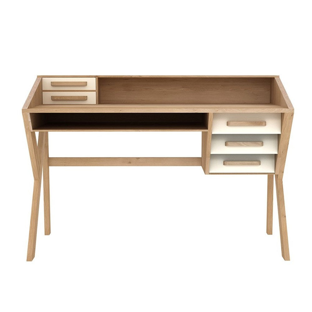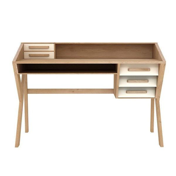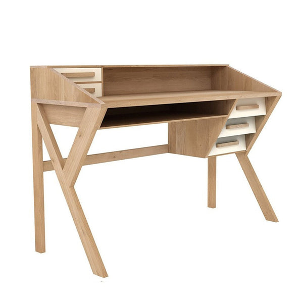 Made from solid oak, this desk is available in two different colours (drawers) - Black or Chalk.