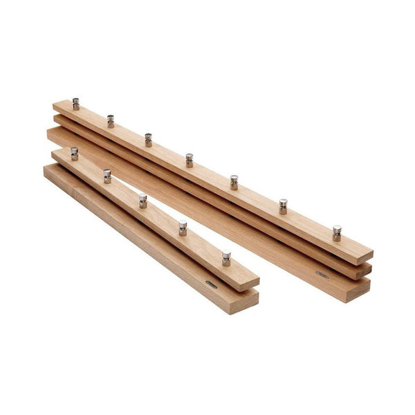 A simplistic coat rack with a base of wood and hooks made from stainless steel. An easy and elegant way to hang your coats, hats, bags and scarfs.