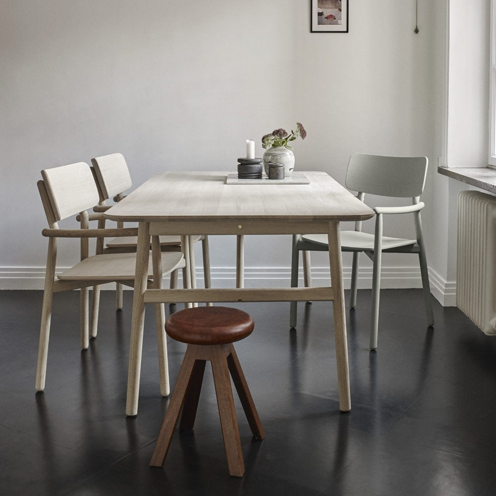 Hven Table is made from solid, FSC-certified oak with a stunning grain pattern and remarkable durability. A soft, minimalist design, characterised by round legs and corners – easy to combine with other items in the living room.