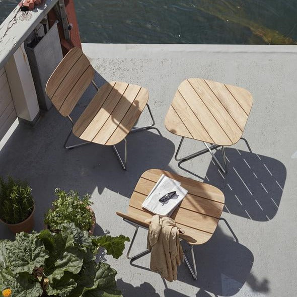 The Lilium lounge chair offers a laid-back break, where the backrest gives slightly when you sit down. With its charming width and curvilinear seat, Lilium resembles the lily pad that inspired it: rounded, open and inviting. The slender steel frame is strong, despite its light look, crafted as it is in stainless steel, ideal for outdoor living.