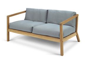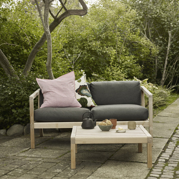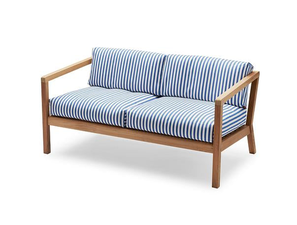 Virkelyst 2-seater is a modern outdoor 2-seater with the seating comfort of an indoor furniture. The simple wooden frame strikes a contrast with the thick, soft cushions. The upholstery is Oeko-Tex certified and extremely colour- and lightfast, water- and dirt-repellent and mildew-resistant. With a cold foam filling the cushion provides a firm and comfortable support. The textile and foam are FR treated and approved for UK markets.