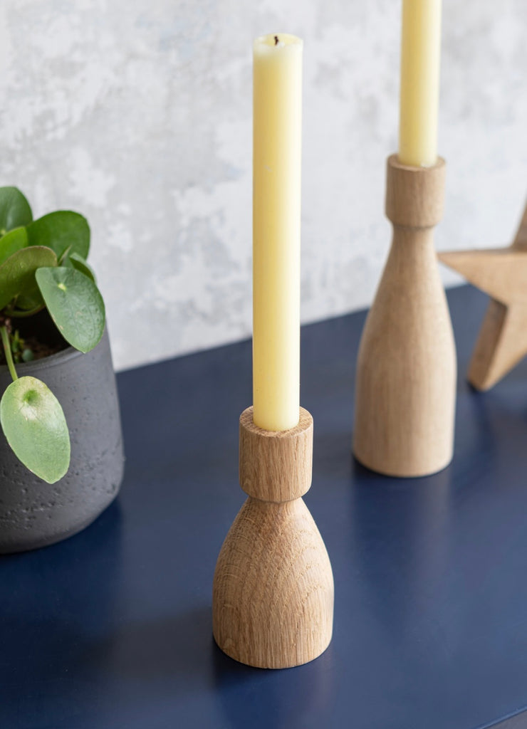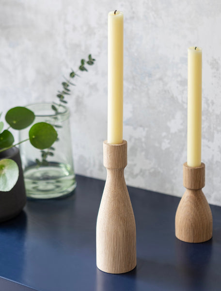 Carefully crafted from solid raw oak and featuring a weighted base to avoid tipping, our Walcot Candle Stick has been beautifully designed to ensure its wood grains are a visible and prominent feature. Guaranteed to create an ambient atmosphere, this design is available in two sizes which both look right at home on a dining table, mantlepiece or windowsill after dark.