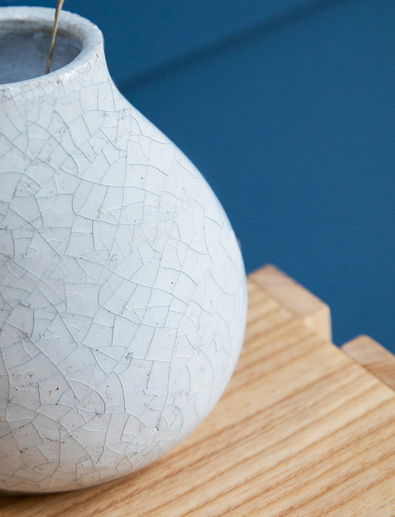 Add a touch of whimsy to any space with this quirky Whitstable bud vase. Its crackled design adds texture and charm, making it perfect for displaying on shelves, windowsills, or desks. Fill it with your favorite flowers for an instant pop of color and personality.